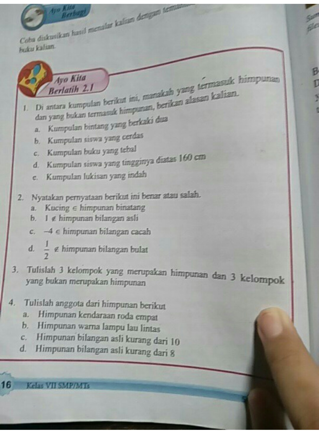 Himpunan Matematika Kelas 7 Bse Kurikulum 2013 Revisi 2016 Lat 2 1 No 2 Youtube